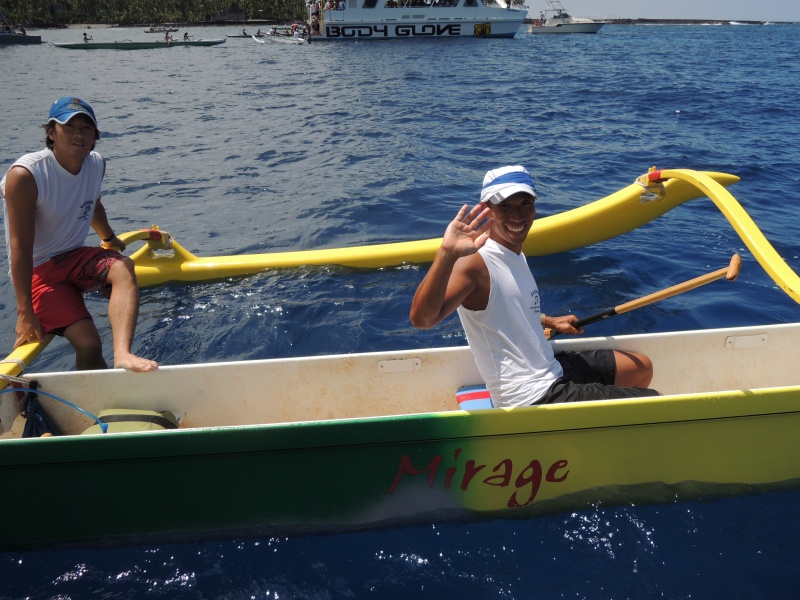 初めてステアマンでのぞんだコナレースでした。 スタートからゴールまで気が抜けず、ゴールするまでずーと必死でした。 反省点は多々ありますが、今の自分を出し切れた満足感はありました。 スタートはいつもはついていく感じでしたが、今回は周りのカヌーを押さえうまく抜け出れました。 上位に行くにはずっとあの走りをしてないといけないんだなぁと感じました。 でも、この感じられた事が今回自分にとって大きな収穫になったと思いました。 今回は経験豊富なクルーの皆さんのおかげで大変助けられ感謝しております。 また、木下さん、ラリーさんをはじめクラブ員の皆さんのおかげでスタート地点に立てる ことをあらためて大きく感じ、大変感謝しております。 ありがとうございました。