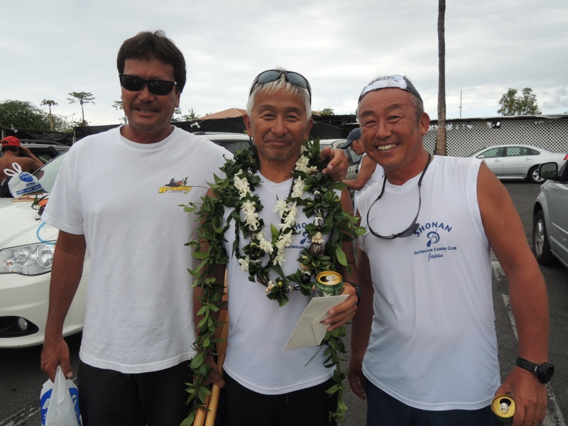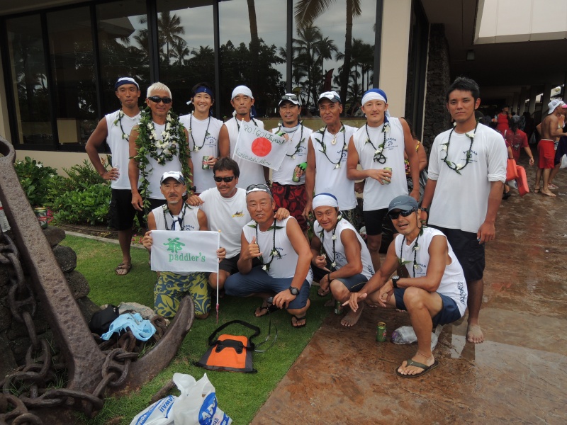 KONA、2度目の挑戦。今回の目標は、前回のタイムを上回ること。 できれば2時間半を切りたい!という秘かな思いもありました。 その目標は、好条件に恵まれたせいもあり、クリアすることが出来ました。 市川代表のKONA挑戦10周年を記念するレースでもあったので、とにかく完漕してゴールラインに辿り着くことが、必須条件でもあったのですが…。 やはり、このレースは回を重ねるごとに「次は…」というキモチが高まって行くようです。スタートラインで150艇余りのカヌーがラインナップするのを見るだけでも、その中に居ることの歓びを感ずる度合いが初挑戦の前回に比べて大きかったように思います。もちろん、その場にラインナップするためには7月、8月の辛い練習を乗り越えて行かなければいけないのですが…。 個人的には、8月の大島トリップで長い距離を漕ぐ練習が出来たのが大きかったように思います。特に今回の大島にはラリーさんが参加して、適切なアドバイスを頂くことが出来たのが大きかった。 市川代表、木下監督、ラリー・コーチという3枚看板を持つSOCCの幸福度は、かなり高いということを実感したレースでもありました。 そして、なによりも一緒に漕いでくれたクルーの皆様へ「ありがとうございました」という気持ちも…。 "Shonan Outrigger Canoe Club,Golden Masters.Thank you for joining us every year!"というアナウンスを聴きながらゴールしたときの充実感は堪りません。またまた、「次は…」という気分が高まってきました。