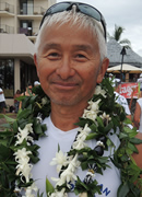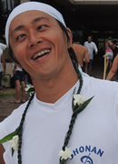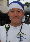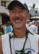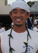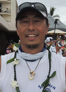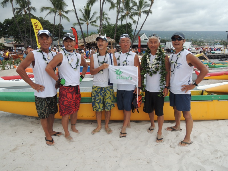 コナ初参加です。リーダーの甘糟さんに誘われて、メンバーを聞いた時に、あ、このクルーなら大丈夫だと思いました。頼もしい方ばかりで、ハワイ行く前から一緒に漕ぐのが楽しみでした。レース中、「凄いよ、2時間切るかも!」と甘糟さんが叫んだ時は嬉しかったです。参加した甲斐がありました。ラストは3〜5艇でデッドヒートを繰り広げ、抜かし抜かされ、パドル人生MAXの気合いが出せました。レースはやはりテクニック云々の前に気合いですよ!